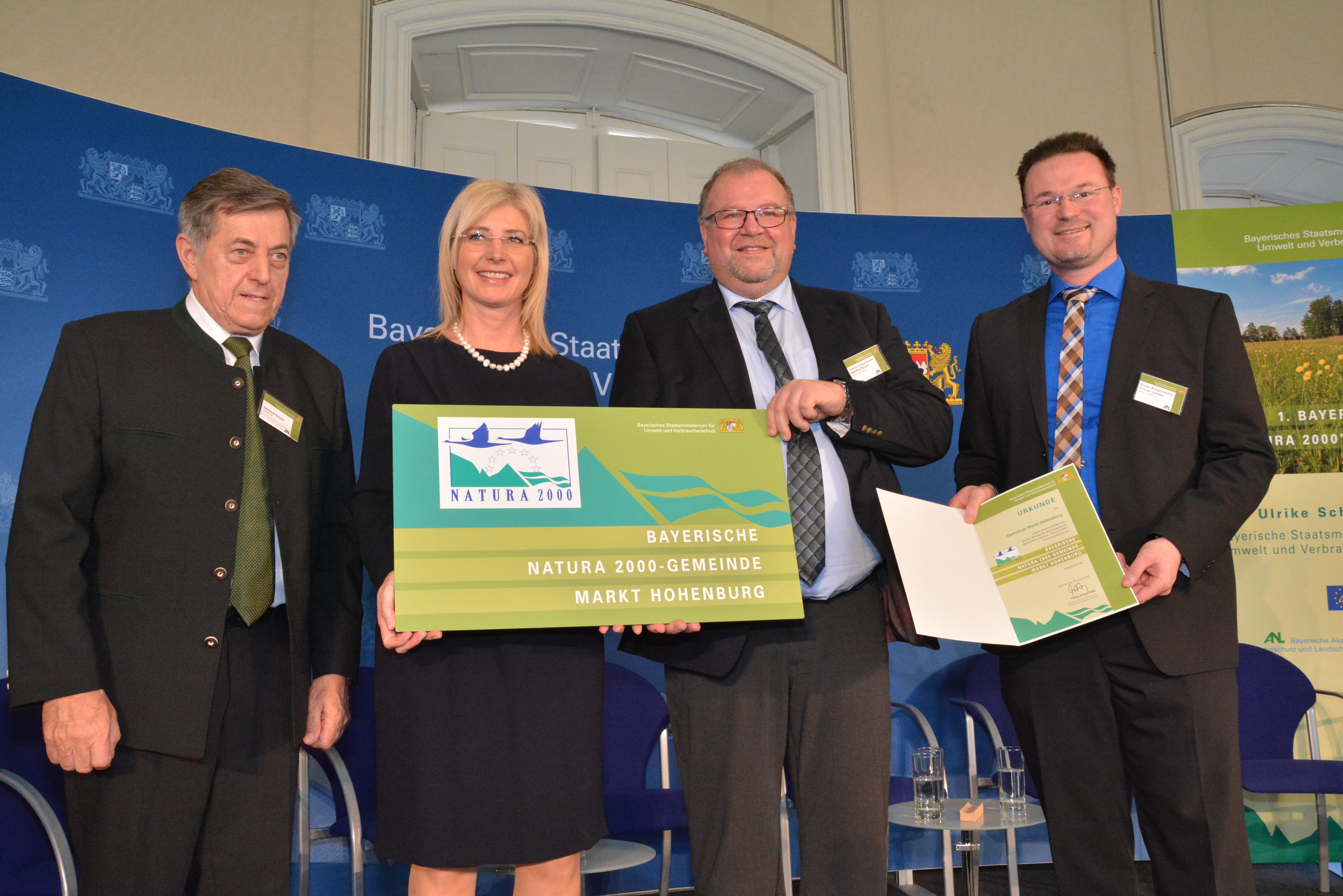 Diese Ehrung erhielt der Markt Hohenburg für sein langjähriges und besonderes Engagement zum Erhalt ökologisch wertvoller Lebensräume auf gemeindeeigenen Flächen – bereits seit den 1990er-Jahren. „Die Auszeichnung “Bayerische Natura 2000-Gemeinde” wird für herausragende Tätigkeiten im Bereich des Artenschutzes und der Kommunalentwicklung verliehen. In einer solchen Kommune bündelt sich das breite Engagement für die Natur und das europäische Naturerbe, das damit für alle sichtbar und erfahrbar wird.“