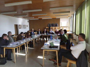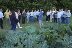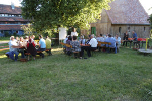 Bürgermeister, interessierte Landwirte und Bürger haben die Hofgemeinschaft besichtigt und sich von den Akteuren vor Ort erzählen lassen, wie diese das Projekt aufgebaut haben und welche Erfahrungen sie damit machen. Im Anschluss entspann sich bei großem Interesse eine rege Diskussion, ob eine derartige Organisationsform auch in der AOVE-Region möglich ist.